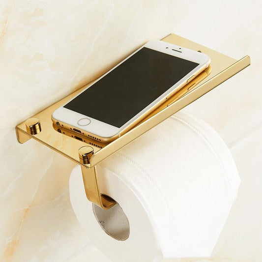 Portarrollos de papel higiénico de madera con estante para teléfono