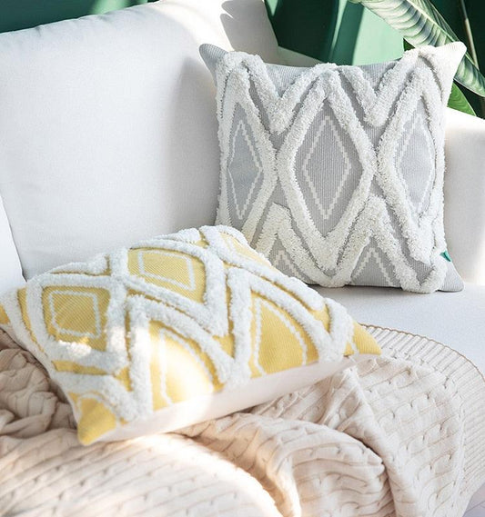 Decoración de salón moderna. Almohadas decorativas. Decoración de habitaciones bohemia, moderna y acogedora.