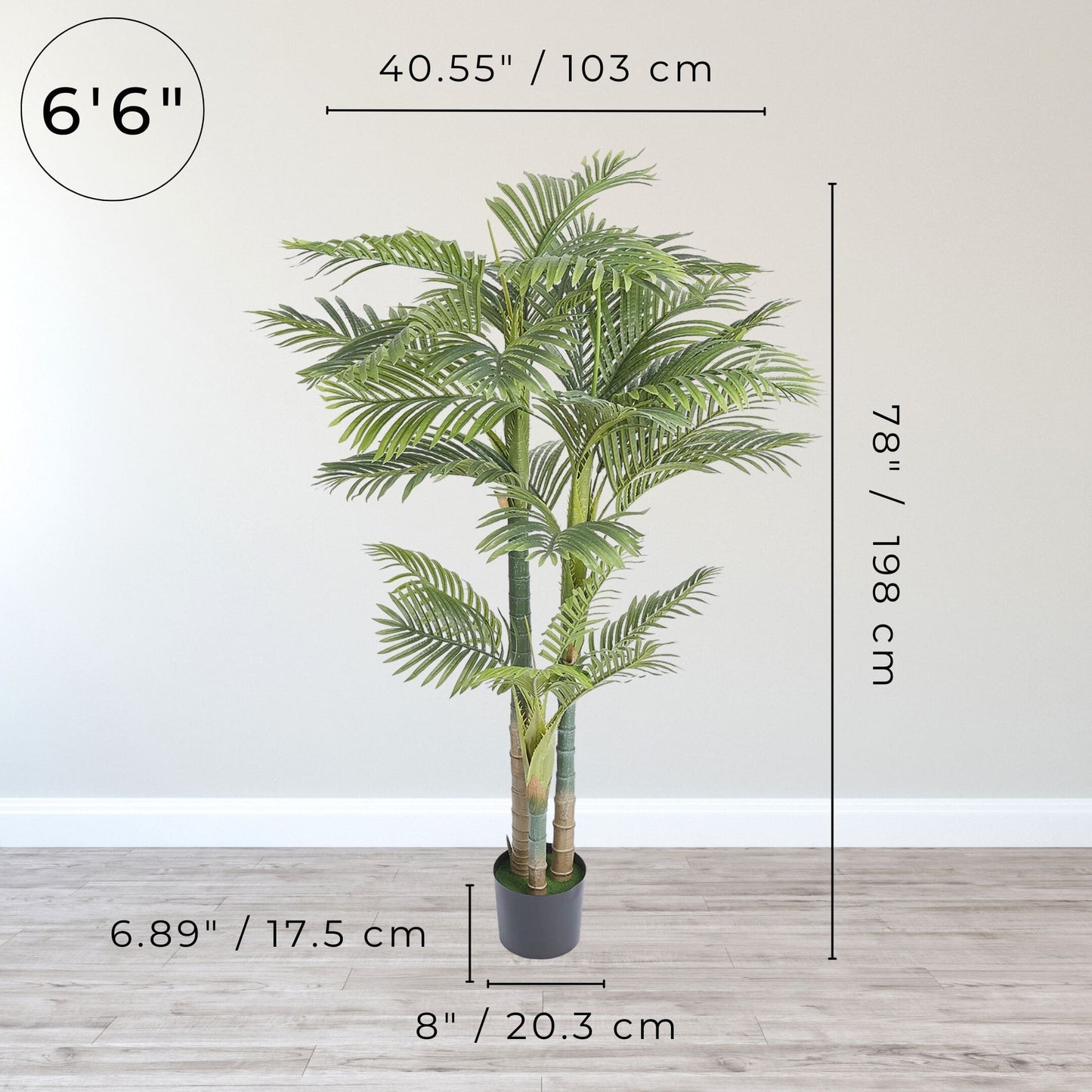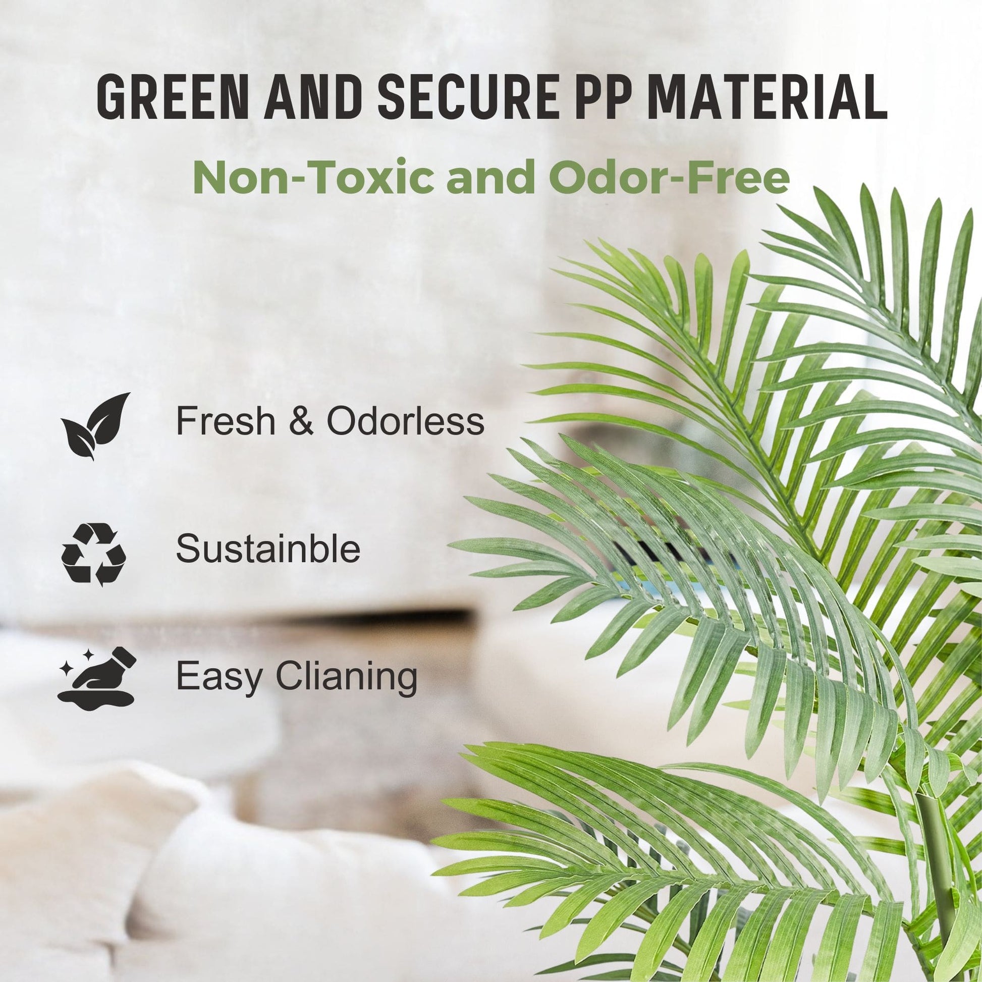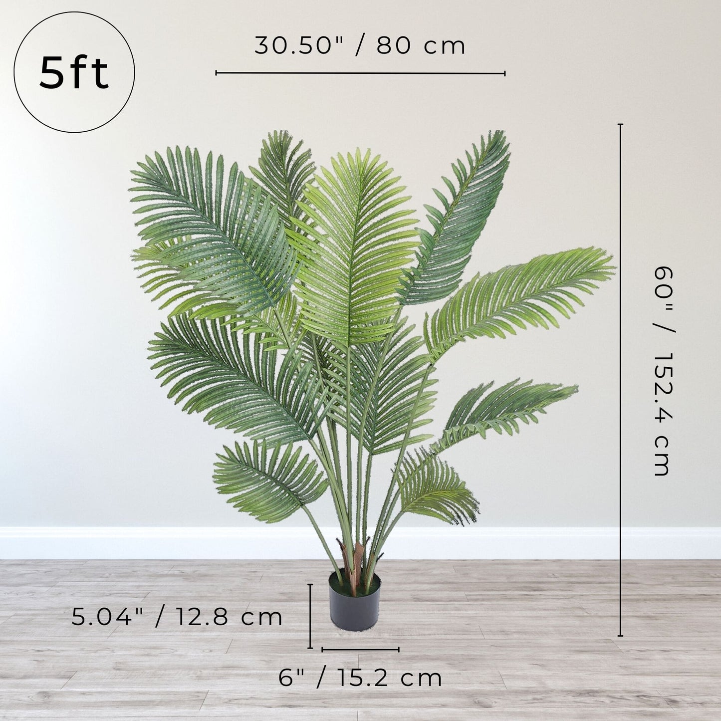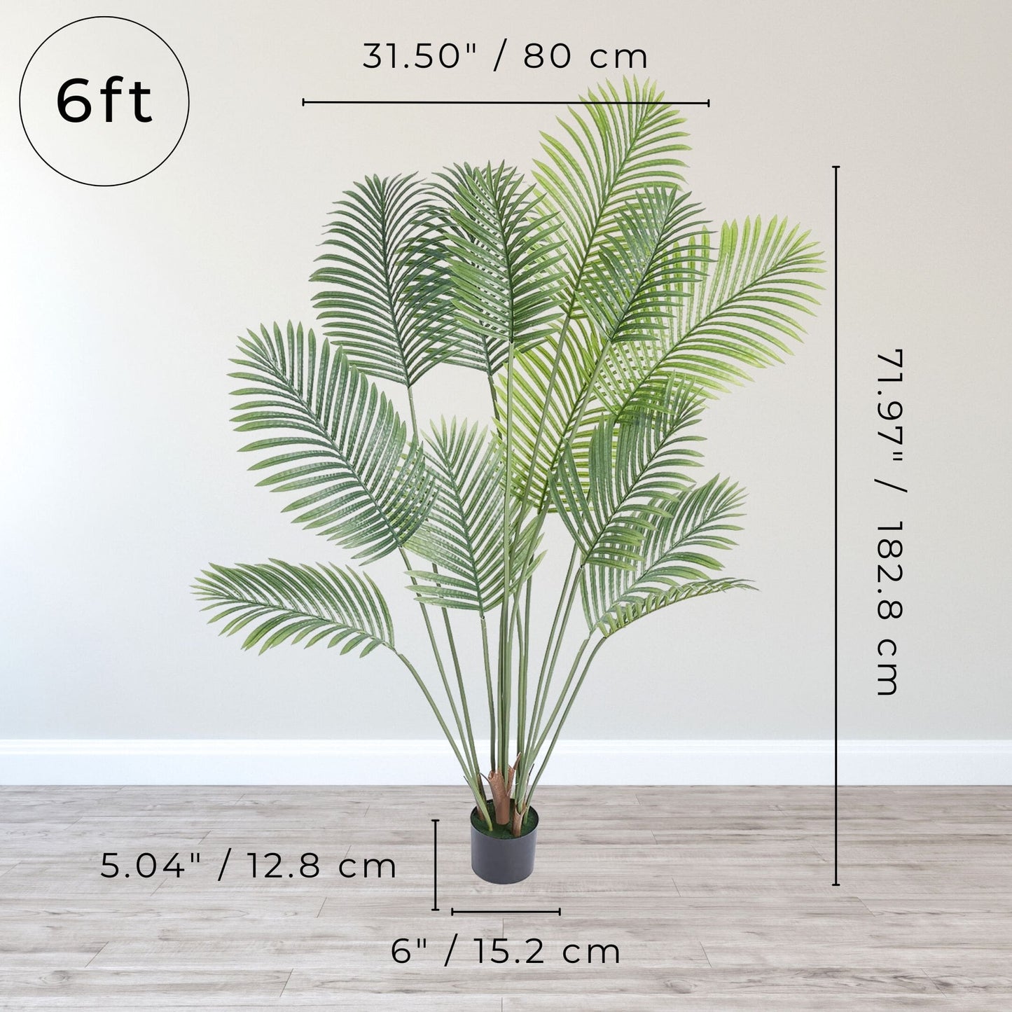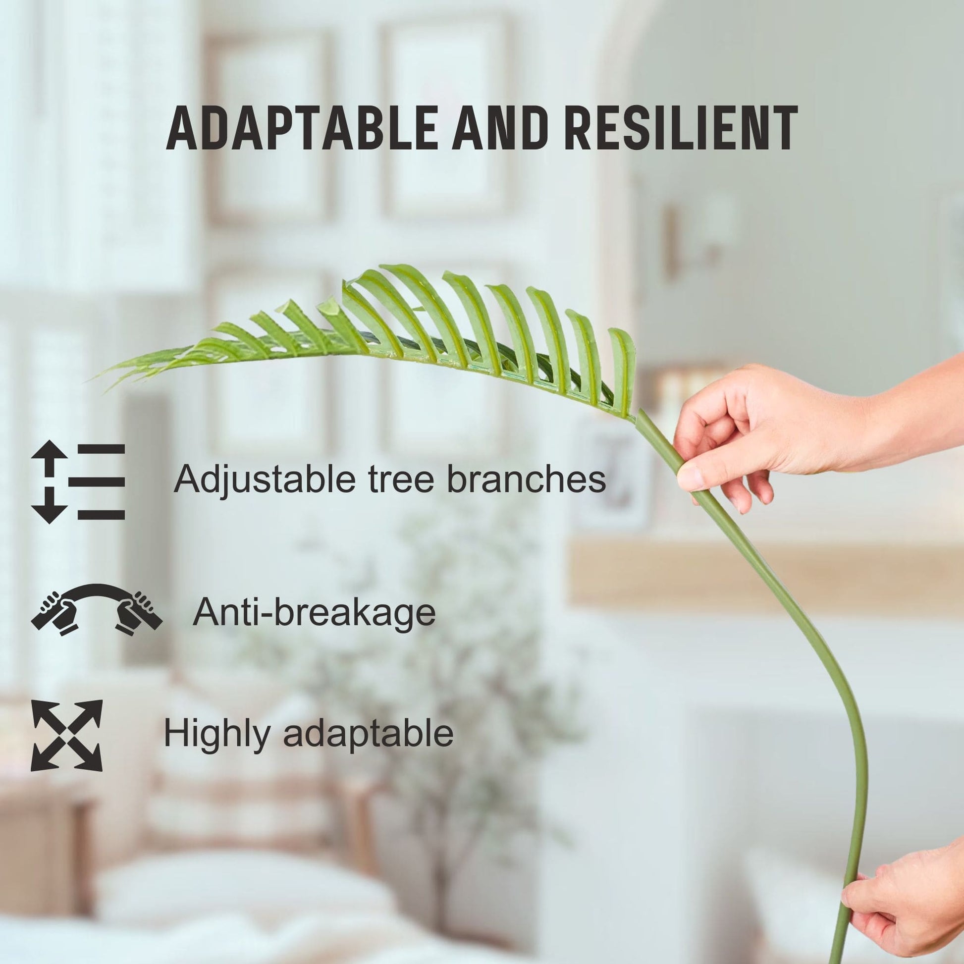 - Estética adaptable: con tamaños que van desde 4 a 6 pies y ramas flexibles, esta palmera se adapta perfectamente a cualquier estilo de decoración.